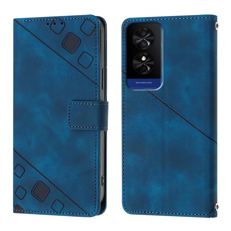 Funda de Cuero para TCL 50 5G Skin Feel en Relieve (Azul)