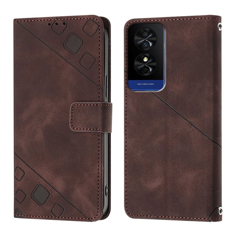 Funda de Cuero para TCL 50 5G Skin Feel en Relieve (Marrón)