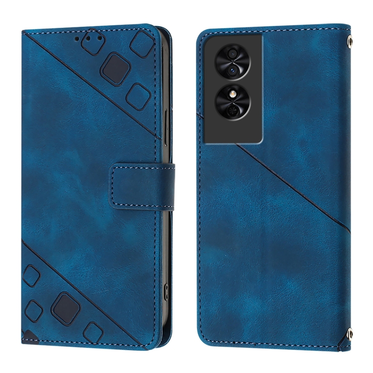 Funda de Cuero Skin Feel para TCL 50 Se en Relieve (Azul)