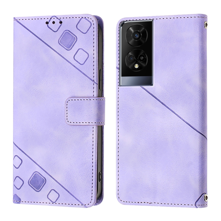 Funda de Cuero para TCL 50 Xe Skin Feel en Relieve (Púrpura Claro)