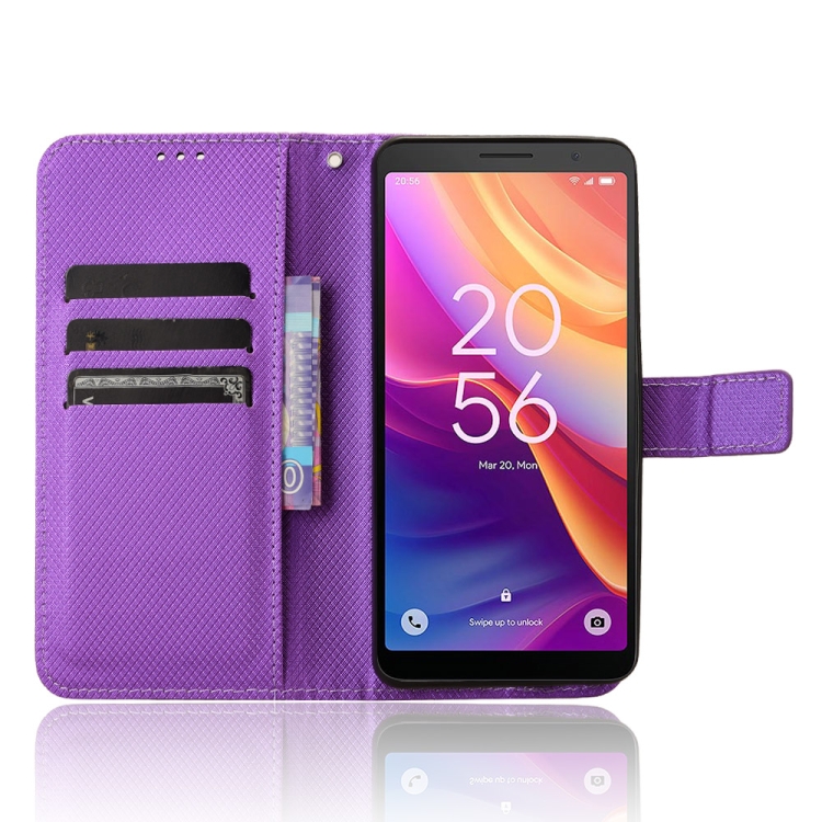Funda de Cuero para TCL 501 4G con Textura de Diamante (Púrpura)