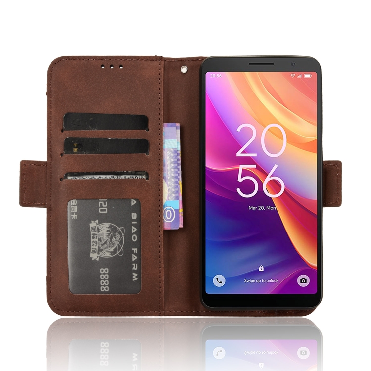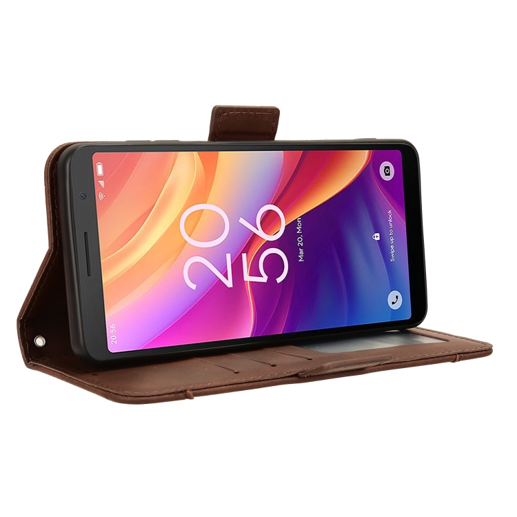Funda de Cuero para Teléfono TCL 501 4G con Textura Becerro y Ranuras para Tarjetas (Marrón)