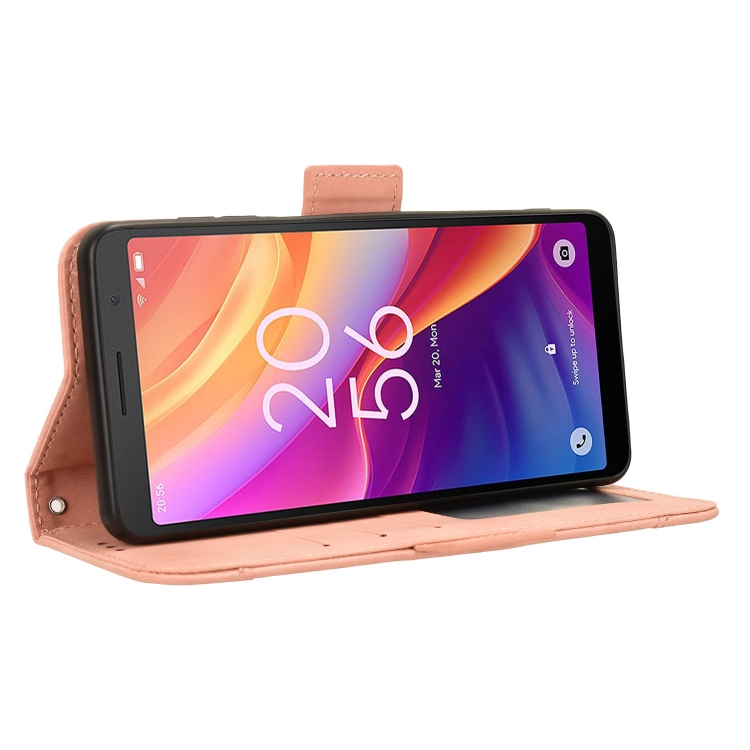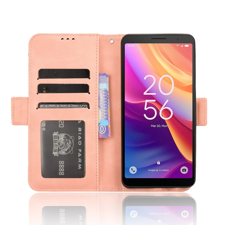Funda de Cuero para TCL 501 4G con Textura Becerro y Ranuras para Tarjetas (Rosa)