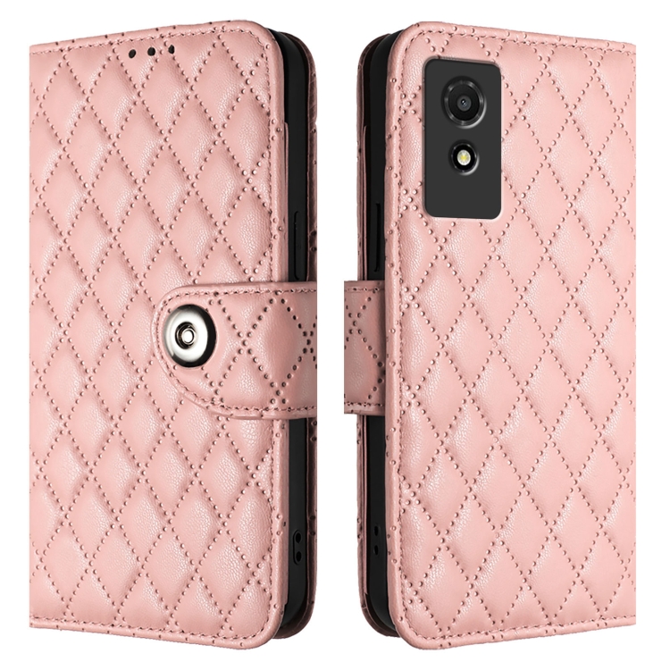 Funda para Teléfono TCL 501 de Cuero con Tapa Textura Rómbica y Cordón (Rosa Coral)