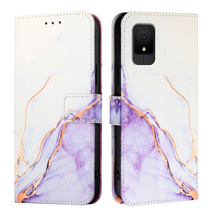 Funda de Cuero para TCL 502 Pt003 con Tapa y Patrón de Mármol (Blanco y Morado)