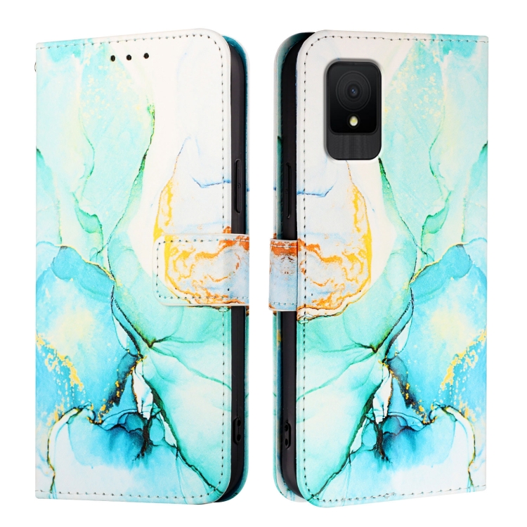 Funda de Cuero para TCL 502 Pt003 con Tapa y Patrón de Mármol (Verde)
