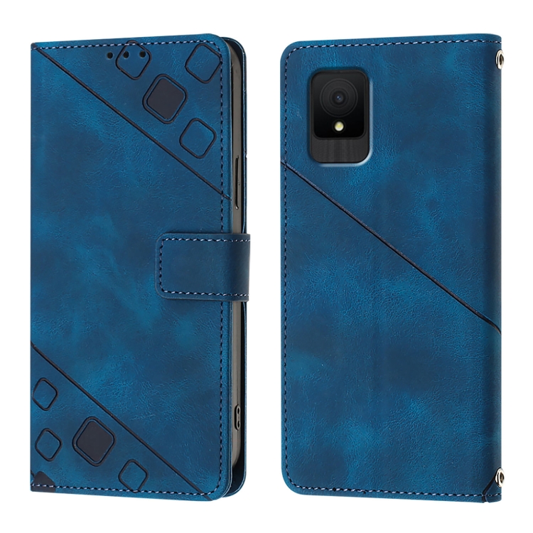 Funda de Cuero para TCL 502 Skin Feel en Relieve (Azul)