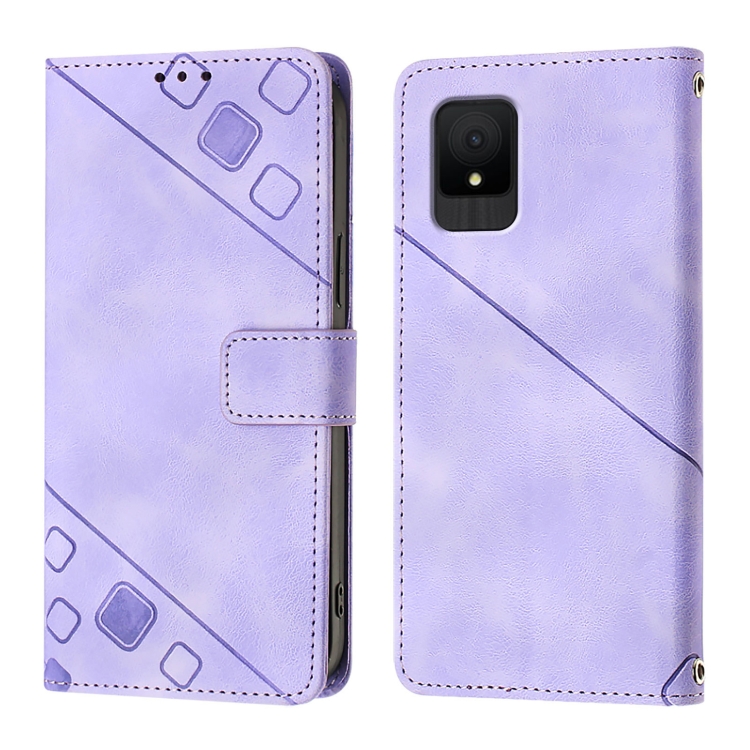 Funda de Cuero para Teléfono TCL 502 Skin Feel En Relieve (Púrpura Claro)