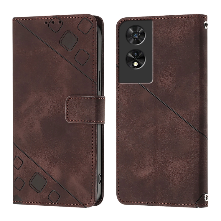 Funda de Cuero para TCL 505 Skin Feel con Relieve (Marrón)