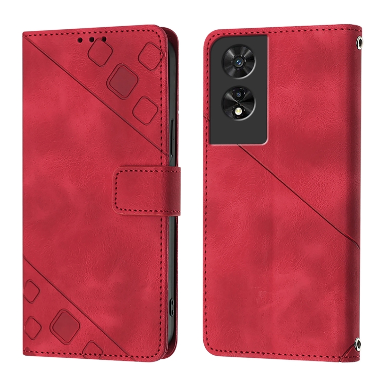 Funda de Cuero para TCL 505 Skin Feel con Relieve (Rojo)
