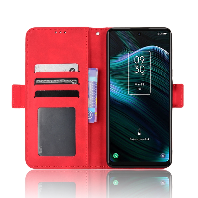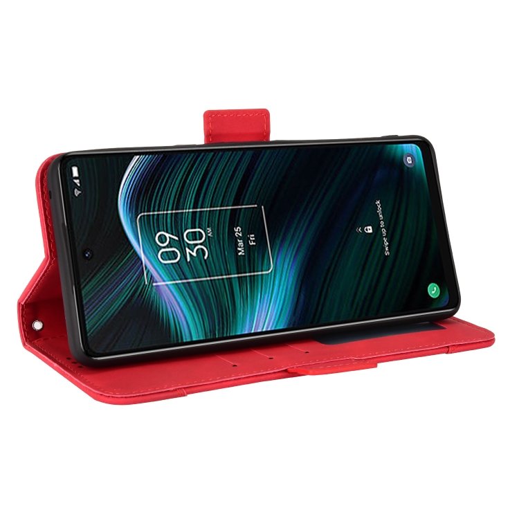 Funda de Cuero para TCL Stylus 5G con Ranuras para Tarjetas y Textura Becerro (Rojo)