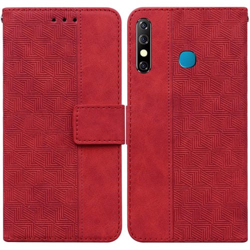 Funda de Cuero para Tecno Camon 12 / Spark 4 Geométrica en Relieve (Rojo)