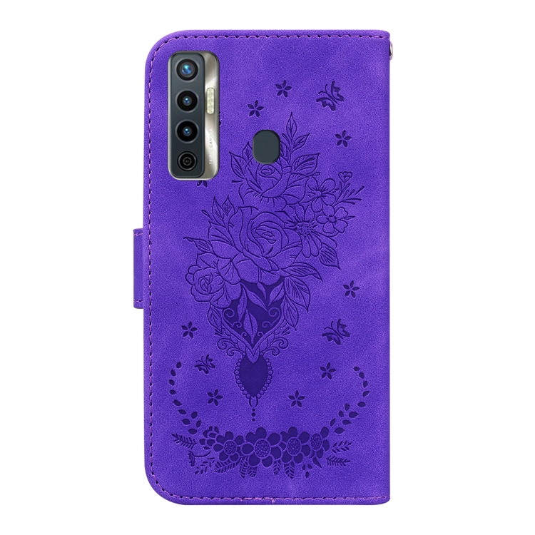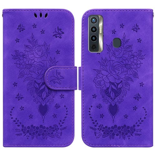 Funda para Tecno Camon 17 Butterfly Rose de Cuero Rossed (Púrpura)