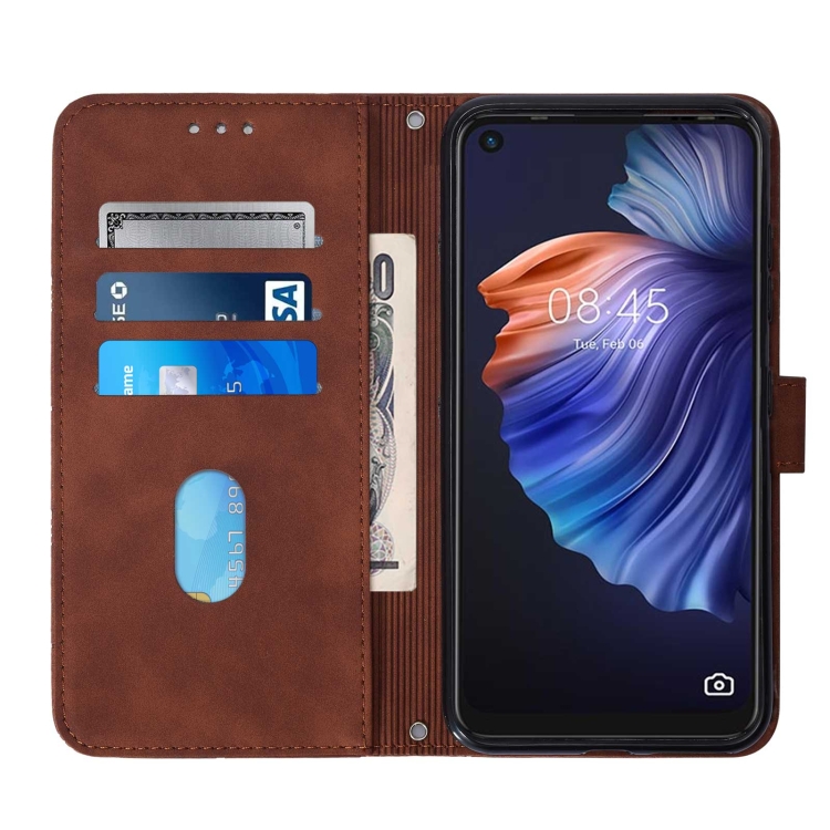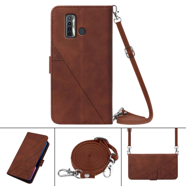 Funda de Cuero para Tecno Camon 17 Crossbody 3D con Goma en Relieve (Marrón)