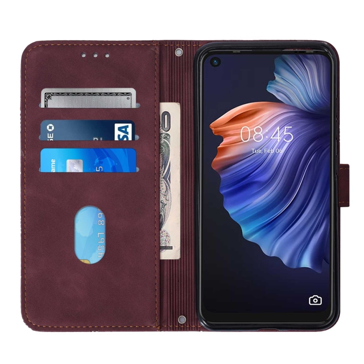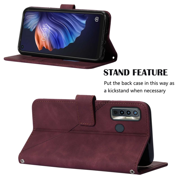 Funda de Cuero para Tecno Camon 17 Crossbody 3D con Goma en Relieve (Rojo del Vino)