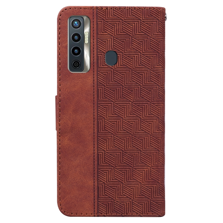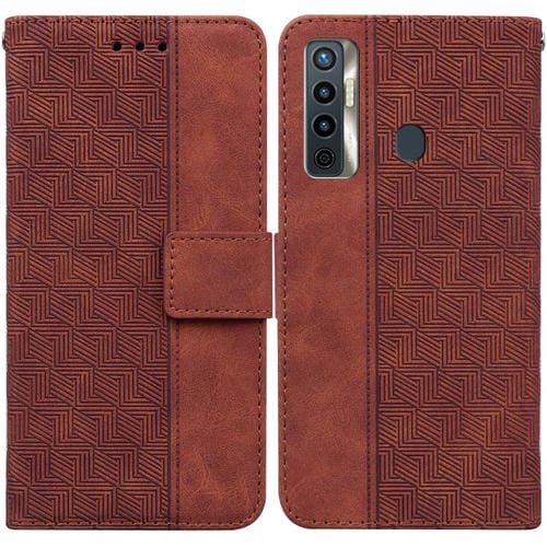 Funda de Cuero para Tecno Camon 17 Geométrica en Relieve (Marrón)
