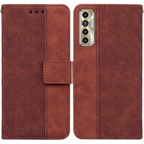 Funda para Tecno Camon 17P Caja de Cuero en Relieve Geométrico (Marrón)