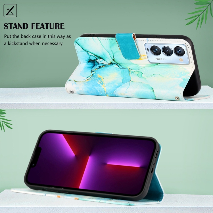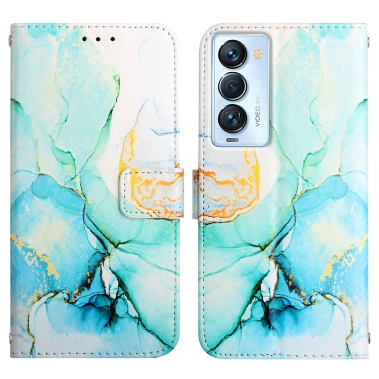 Funda de Cuero para Tecno Camon 18 P Pt003 Patrón de Mármol (Verde)