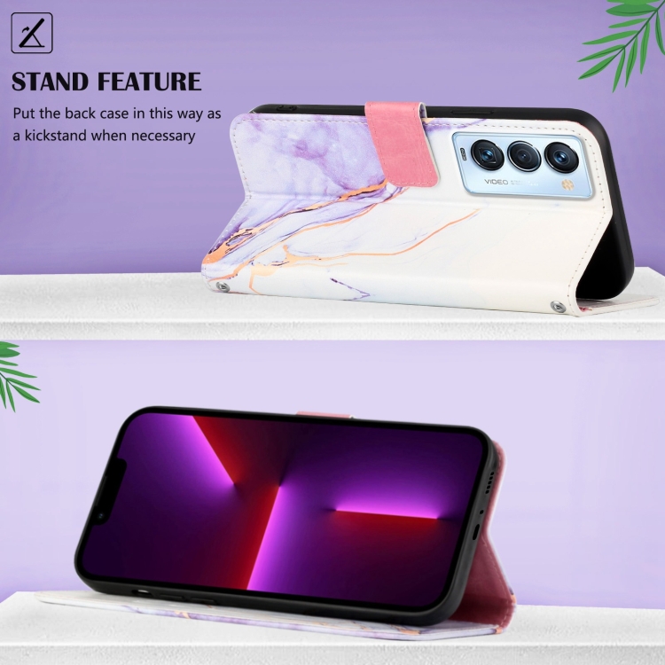Funda Flip para Tecno Camon 18 Premier Pt003 Patrón Mármol (Blanco Purple)
