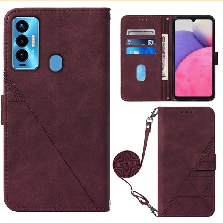 Funda de Cuero En Relieve 3D para Tecno Camon 18I Crossbody (Rojo del Vino)