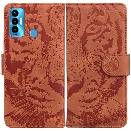 Funda para Tecno Camon 18I con Estampado en Relieve de Tigre y Goma Horizontal (Marrón)