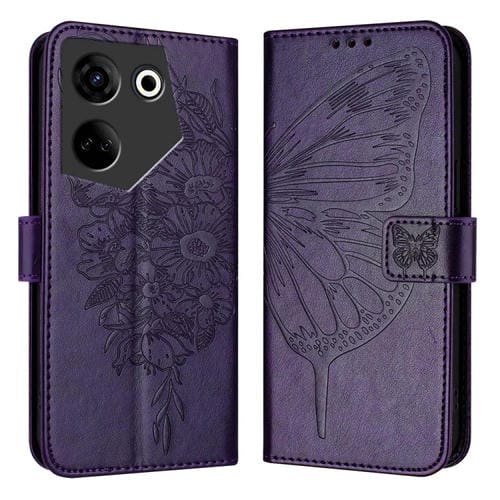 Funda de Cuero para Tecno Camon 20/20 Pro 4G con Mariposa en Relieve (Púrpura Oscuro)
