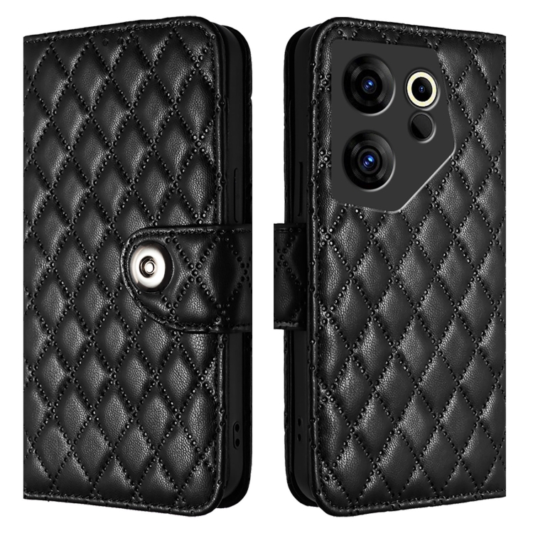 Funda de Cuero para Tecno Camon 20 Premier 5G con Tapa Textura Romboidal y Cordón (Negro)