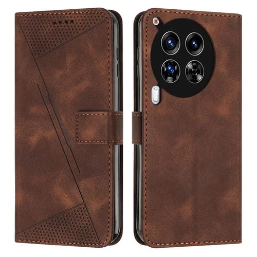 Funda de Cuero para Tecno Camon 30 4G 5G Dream Triangle con Cordón (Marrón)