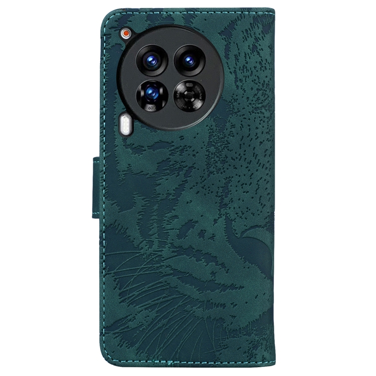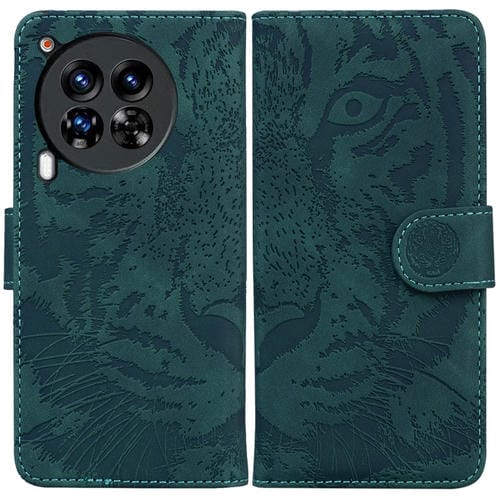 Funda de Cuero con Tapa para Tecno Camon 30 Premier 5G Tiger Patrón en Relieve (Verde)