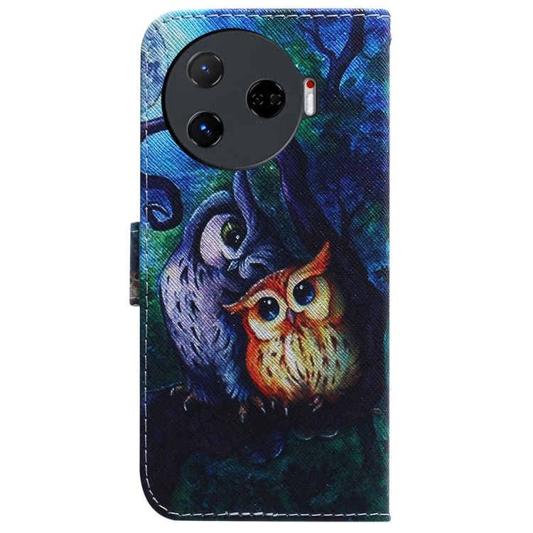 Funda de Cuero para Tecno Camon 30 Pro Cl8 con Tapa y Dibujo Coloreado (Búho)