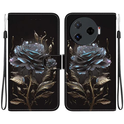 Funda para Tecno Camon 30 Pro Cl8 de Cuero con Dibujo Coloreado y Textura de Cristal (Rosa Negra)