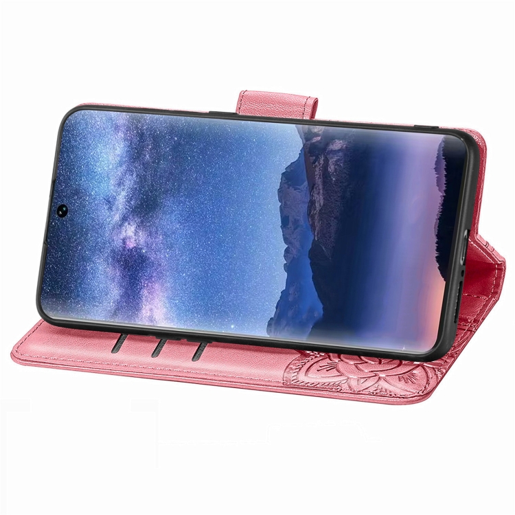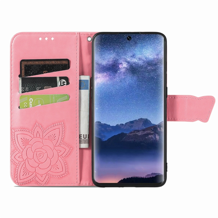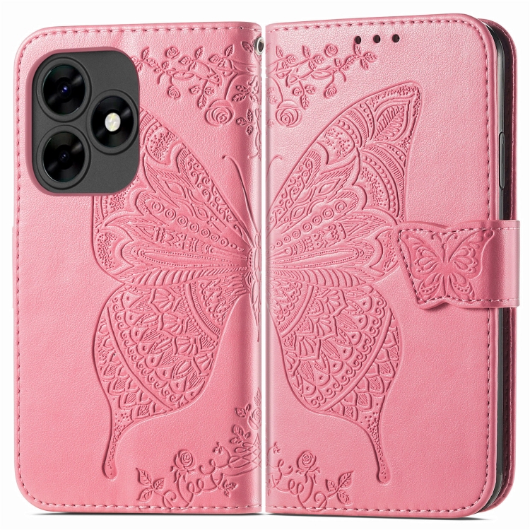Funda para Tecno Itel S23 de Cuero con Relieve Flor y Mariposa (Rosa)