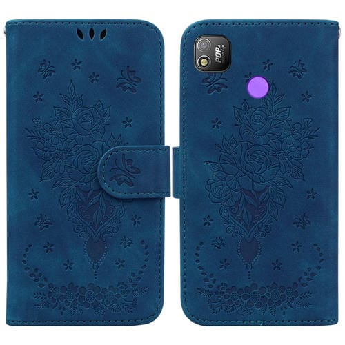 Funda para Tecno Pop 4 de Cuero con Relieve de Mariposa (Azul)