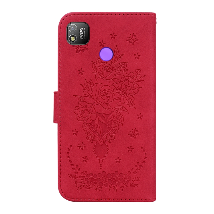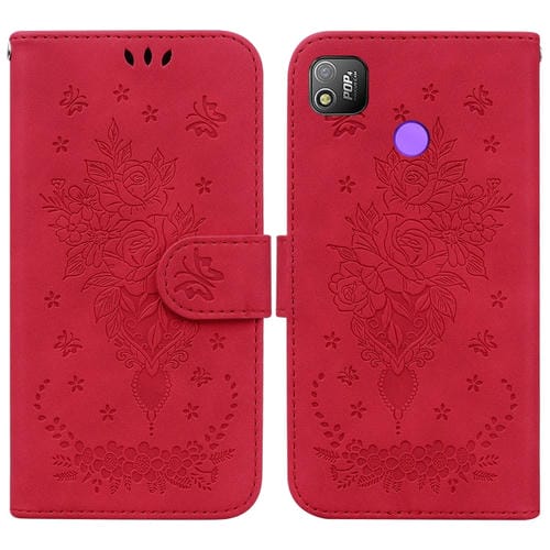 Funda para Tecno Pop 4 de Cuero con Relieve de Mariposa (Rojo)