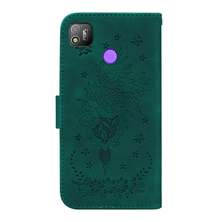 Funda para Tecno Pop 4 de Cuero con Relieve de Mariposa (Verde)
