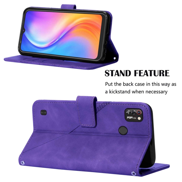 Funda Flip 3D de Cuero para Tecno Pop 4 Pro Cross Cley (Purple)
