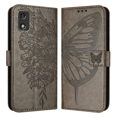 Funda para Teléfono Cuero Tecno Pop 5C Itel A23 Pro A17 con Mariposa En Relieve (Gris)