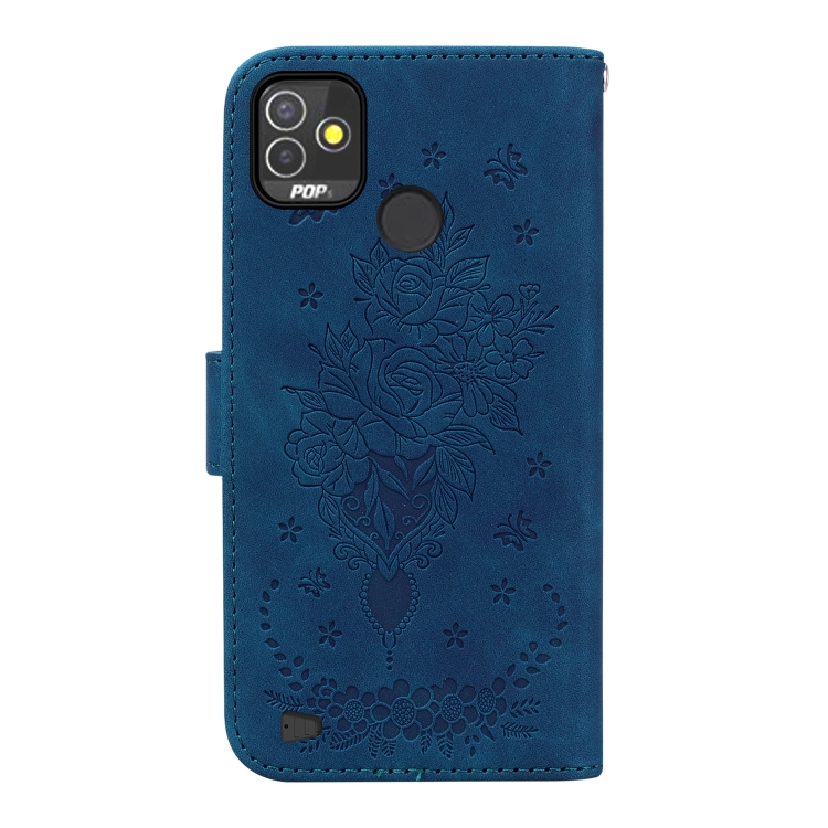 Funda para Tecno Pop 5P Butterfly Rose Foothip en Relieve de Cuero (Azul)