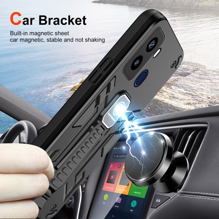 Funda 2 en 1 para Tecno Pop 6 con Soporte y Protección a Prueba de Golpes (Negro)