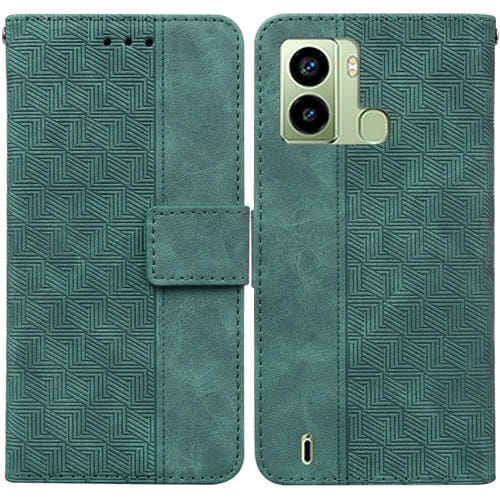 Funda de Cuero Flip para Tecno Pop 6 Fingerprint con Relieve Geométrico (Verde)
