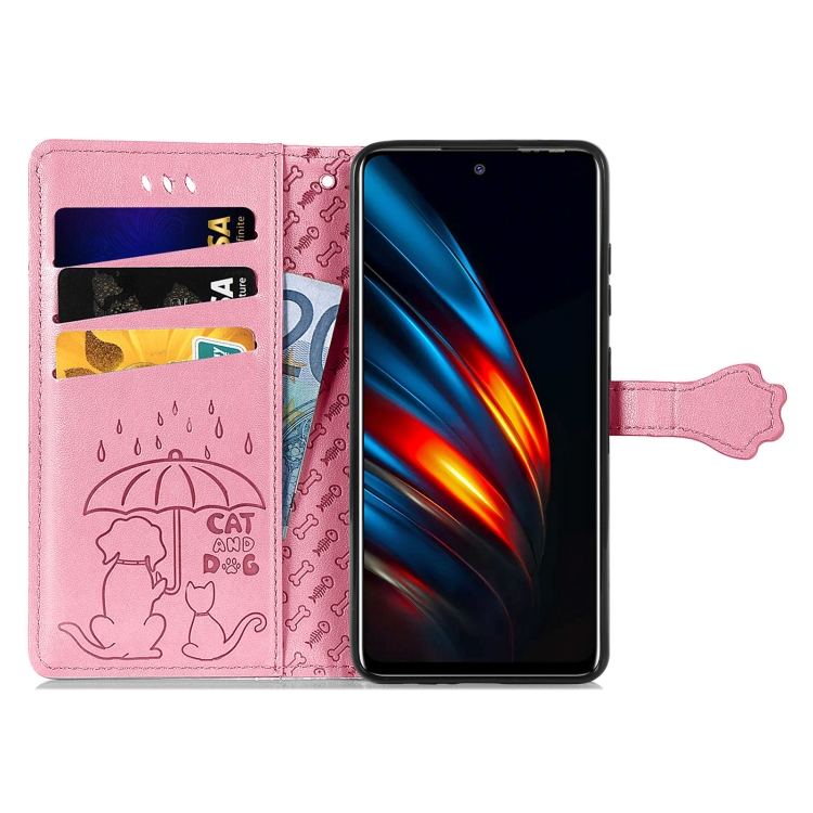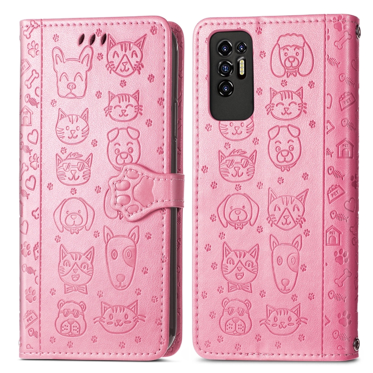 Funda para Tecno Pova 2 Cuero Flip Horizontal con Estampado Gato y Perro, Titular, Tragamonedas y Cordón (Rosa)