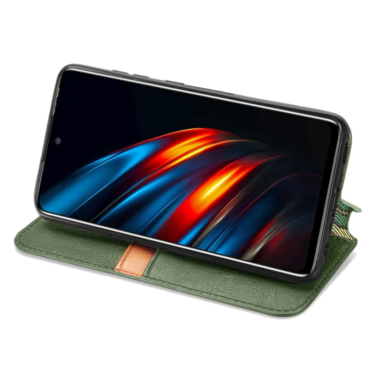 Funda de Cuero Magnética para Tecno Pova 2 con Soporte y Ranuras para Tarjeta (Verde)