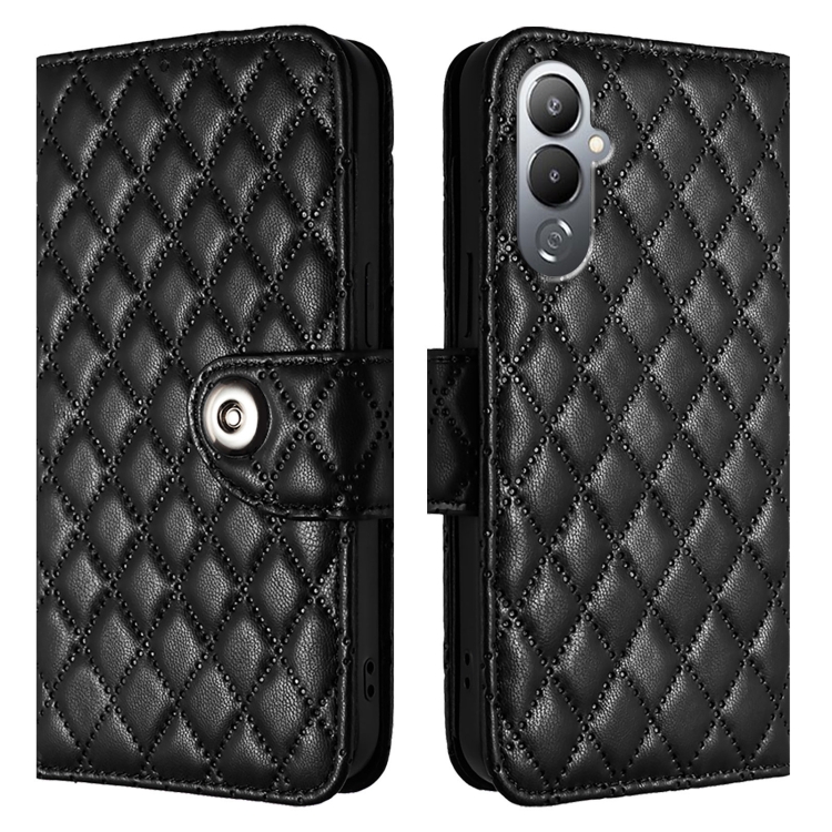 Funda de Cuero para Tecno Pova 4 con Tapa Textura Rombal y Cordón (Negro)