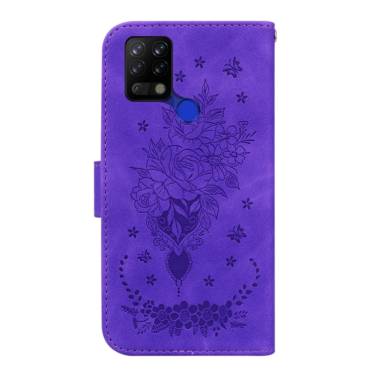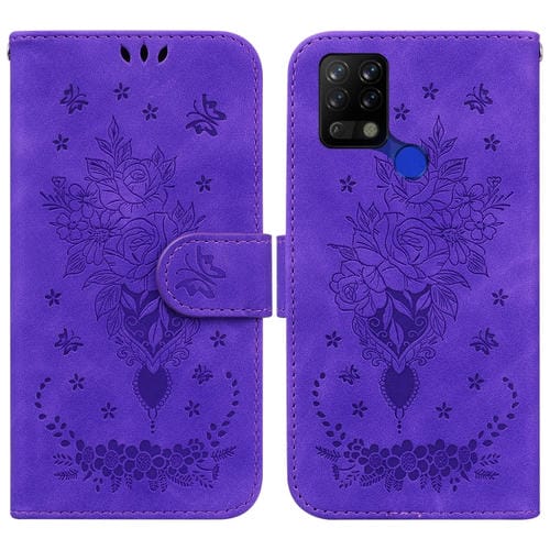Funda para Tecno Pova 4G Butterfly Rose Foothip en Relieve de Cuero (Púrpura)