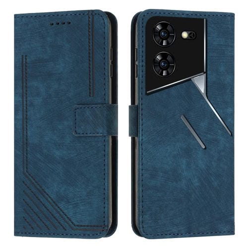 Funda de Cuero para Tecno Pova 5 Pro con Patrón de Rayas y Cordón Largo (Azul)