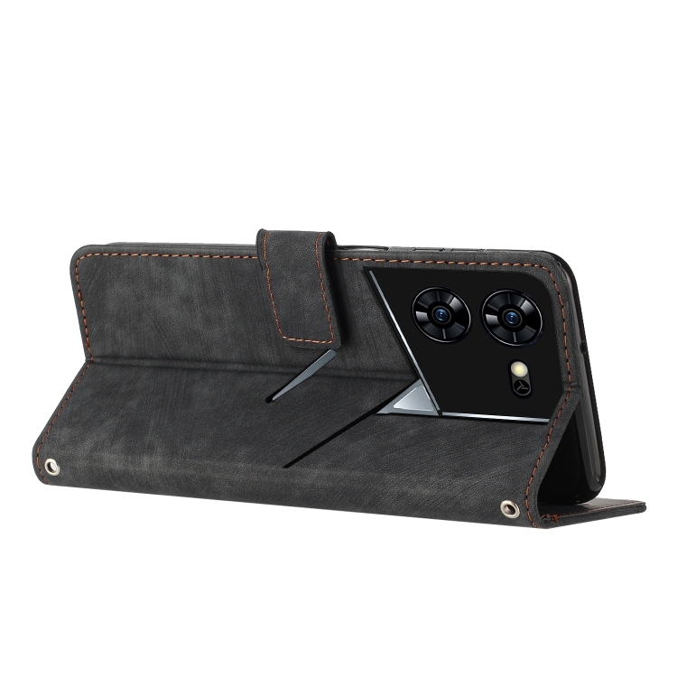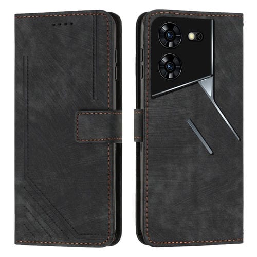 Funda de Cuero para Tecno Pova 5 Pro con Patrón de Rayas y Cordón Largo (Negro)