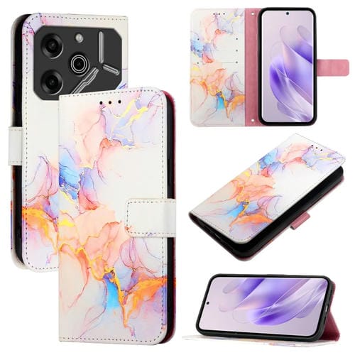 Funda de Cuero con Tapa para Tecno Pova 6 5G Pt003 con Patrón Mármol (Galaxy Marble White)