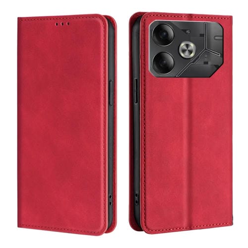 Funda de Cuero Magnética para Tecno Pova 6 5G Skin Feel (Rojo)