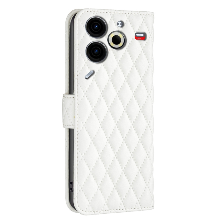 Funda de Cuero con Tapa para Tecno Pova 6 Neo Diamond Lattice (Blanco)