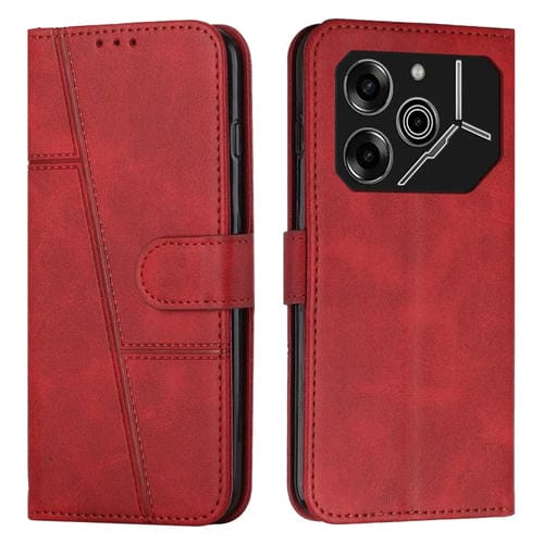 Funda para Tecno Pova 6 Pro de Cuero con Hebilla y Textura de Becerro (Rojo)